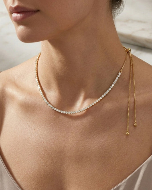 Collar tipo tennis ajustable color dorado